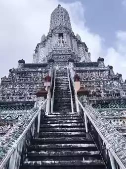 From BTS Saphan Taksin Station, take a 5-minute boat ride to the Wat Arun pier. Pay the 200B entrance fee in cash at the wooden ticket booth immediately after getting off the boat. Cards are not accepted, so be prepared.