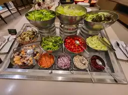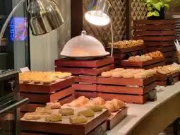 The hotel restaurant is located on the 5th floor, offering a wide variety of dishes including Chinese, Western, Japanese, and authentic Thai cuisine. There are also soft serve ice cream and various fruits as desserts, which are impeccable. Dining there around 6 a.m. provides a fairly relaxed atmosphere, but after 7:30 a.m., it starts to get crowded, showing that the hotel’s breakfast service is well appreciated by travelers.