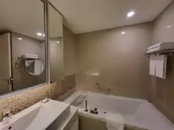 The hotel offers comprehensive facilities, including a bathtub and shower in the room, a large refrigerator and freezer, as well as a kitchenette and microwave. Snacks from the minibar and cold drinks in the fridge are free for guests to take at will, and they are replenished daily during cleaning, which is very generous.