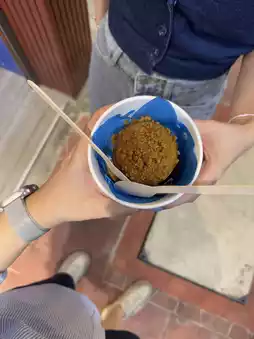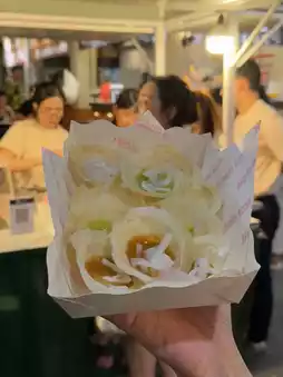 What to eat at Banthat Thong, light style Because by the time you get to Banthat Thong, it’s already past 7 pm 😂 Location of restaurants for 2 people, focusing more on snacks Start with these places: 🥠 Lao Loa Tofu House, salted fried tofu with custard texture, thin crispy batter, and soft smooth inside. Served with a secret dipping sauce Grandma’s (XO sauce). Enjoy while waiting in line at Lobster City. 🦞 Lobster City, shrimp rice bowl with shrimp paste sauce, perfectly salty and rich, eaten with seafood dipping sauce, excellent. 🍨 Harmon, a blended ice cream shop where customers can DIY their own ice cream by choosing from 3 base flavors: milk, Greek yogurt, and fragrant coconut, then pick the flavor to blend, and finish with toppings. 🍦 Groomed Ice Cream, fried ice cream. We ordered fried yogurt ice cream + caramel sauce + Lotus Biscoff. 🥥 Homm Kok, crispy thin traditional Kanom Krok from Nakhon Sawan, available in 3 flavors (coconut milk, Thai tea, pandan). We chose the mixed flavor, just the right sweetness, not too rich. 🥚 HAAB, charcoal-grilled egg snack, original recipe from Songkhla, butter filling with strong buttery aroma, best eaten warm, very satisfying.