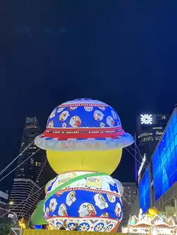 • The main highlight is a 10-meter tall inflatable B.Duck in traditional Thai costume, positioned in the center of the event to welcome guests