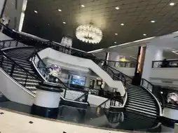 The black and white spiral staircase stretches upward like piano keys 🎹, a giant crystal chandelier pours amber light, and fresh flowers at the stair corners subtly reveal Thai softness. Every step feels like walking into a light and shadow art gallery, with an effortlessly luxurious aura.