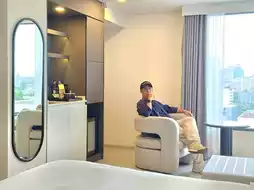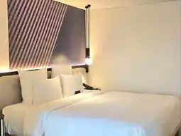 A “bright but not chaotic” stay really exists. This place is not just a “bed” but a “creative space” full of fun, vibrant designs, featuring unique furniture, bold colors, and complete amenities including a city-view swimming pool, restaurant, fitness center, and a 24-hour coffee shop.