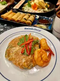 The legendary Phat Thai restaurant, Thip Samai "Phat Thai Pratu Phi," is a famous and very popular Phat Thai spot in the Pratu Phi area. This restaurant is known for its Chan noodle Phat Thai stir-fried with shrimp paste and fresh shrimp, wrapped in an egg, also called Phat Thai wrapped in egg. The Phat Thai has a rich, savory flavor with the aroma of shrimp paste, chewy and soft Chan noodles, and fresh shrimp, all made from fresh ingredients. Besides Phat Thai, there are other popular menu items such as freshly squeezed orange juice. Additionally, the restaurant has a cozy atmosphere, decorated in a museum style that tells the story of the restaurant and Phat Thai. Highly recommended!
