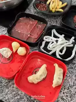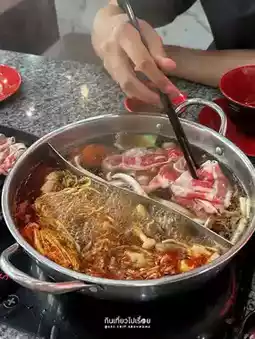 Review of Teenoi Suki, Liab Duan branch, probably the first branch. We went with just 2 people, got in right away without waiting. The restaurant is spacious with plenty of seats. The food came quickly and promptly. I recommend ordering sliced beef and bacon, very worth it because you can order unlimited. For those who like strong flavors, don't forget to add Mala soup (only about 49 baht extra). It’s slightly spicy and numbing, just right.