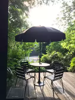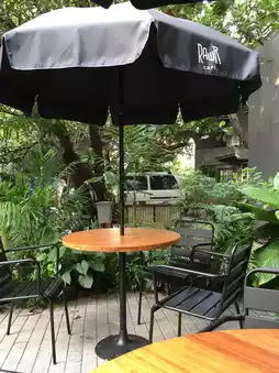 A very shady and pleasant cafe atmosphere in the city. Inside the shop, there are both indoor and outdoor seating areas. The highlight here is the abundance of trees, which enhances the atmosphere even more. It feels like sitting and sipping coffee in the middle of a forest, very soothing for the soul. Importantly, the cafe also offers tea, coffee, and bakery items.