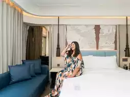 🛌 Change up your relaxing day by staying at a riverside hotel, watching boats go by from your room. It's not far to walk to Asiatique, and to catch the BTS at Taksin Bridge, there’s a Shutter Boat service. Great location, super convenient. Today, I’m staying in a Premier Deluxe room—spacious, newly renovated with a more modern look, a big comfortable bed, a sofa corner to relax with large windows, a work desk, and bathroom. The common area has an outdoor pool surrounded by gardens, spa and fitness services, and full amenities.