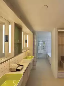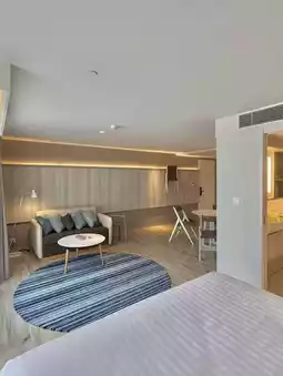 I booked a studio room, the basic room here, but was upgraded two levels to a deluxe corner room, which is a spacious and beautiful corner room with well-arranged furniture and a balcony. The bathroom is very spacious with a large bathtub, very comfortable.