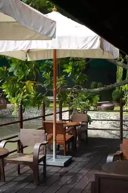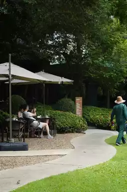 A glimpse into the lifestyle of early Thai elite. At the core of the estate stands the third tallest tree in Bangkok, with poetic light and shadow under its shade, surrounded by koi fish by the pond—perfect for soaking up some European vibes.
