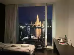 This room has large windows that allow a full view of Wat Arun, and the bed here feels incredibly comfortable.