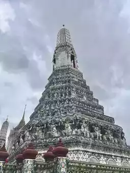 Wat Arun, also known as the Temple of Dawn, is one of the most iconic buildings. Nicknamed the "Thai Eiffel Tower," Wat Arun is located on the magnificent banks of the Chao Phraya River, with its main prang towering 82 meters high, making it a striking landmark on the Bangkok skyline.