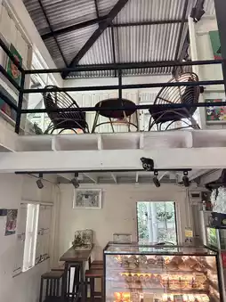 A hidden cafe in King Mongkut's University of Technology Ladkrabang, Faculty of Architecture, with a super chill atmosphere! The cafe is in an old two-story wooden house surrounded by trees, feeling like a small forest 🪴💭