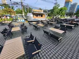 There are many Thai-style clothing and various cuisines to enjoy, with plenty to eat and buy. The streets are straight and smooth, featuring a consistent visual design, while each small shop maintains its unique charm. The outer area has a dining zone with free seating and trash bins, and there is a large supermarket nearby. The transportation is convenient, and the facilities are complete.