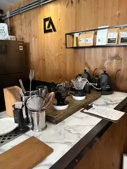 The shop is decorated in a Loft style with black and gray tones. It’s not very big but comfortable to sit in, with cool photo spots and a relaxed atmosphere where you can enjoy music. The drink menu is diverse, including coffee, green tea, and they also have cookies, which are not always available. The prices for drinks are very reasonable, and the staff provide good service.