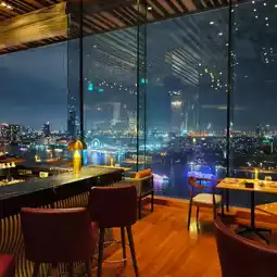 A restaurant with a Chao Phraya River view bar located on the 26th-floor rooftop of AVANI+ Riverside Bangkok hotel. There are both indoor and outdoor seating areas. I must say, the nighttime view of the Chao Phraya River is truly beautiful.