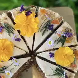 • Cakes decorated with edible flowers like Lemon Tart and Carrot Cake are both delicious and photogenic 🌼