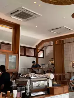 Minimalist cafe by the Chao Phraya River with a warm and cozy atmosphere, plenty of photo spots both indoor and outdoor, offering a full view of the Rama 8 Bridge. The evening is the most beautiful time. Great coffee, delicious homemade desserts. The recommended menu includes Thousand Li fragrant tea pudding and custard toast. There are many creative coffee options to try.