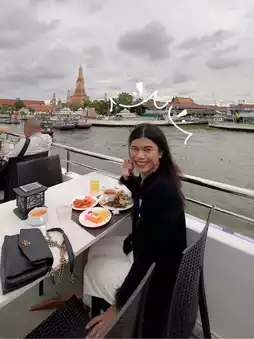 Atmosphere/Location - Enjoy a grand and delightful experience on a luxurious and elegant boat while viewing panoramic scenes along both sides of the Chao Phraya River on the White Orchid River Cruise 🛥️🏯🌥️✨