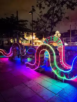3. Interactive light bulbs at the queue on the Sao Chingcha side – walking past, the lights changed with movement. It was really fun.