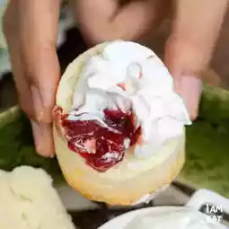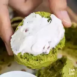 Matcha 115 THB – Matcha scone served with sweet red bean cream. All flavors are great, I really love them.