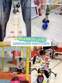 HARBOR LAND at SINDHORN MIDTOWN branch is open daily from 10:30 AM to 7:30 PM. This branch in Bangkok is not very large but is conveniently located in the city center. You can take the BTS Skytrain or a bus and get off at Silom Station, then walk 500 meters to reach it. It’s convenient for people visiting Bangkok who want to explore the Siam area and then stop by Silom, which is neither too close nor too far. It’s a great opportunity to bring kids to play in the indoor playground. However, this branch is not very big, so if many children come to play, it can feel a bit cramped. Overall, the kids have fun.