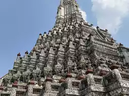 The main prang (tower) is about 80 meters tall and is densely adorned with intricate ceramic mosaic decorations.