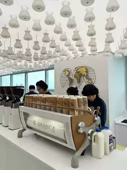 Perched on the 55th floor of Empire Tower, % Arabica Bangkok isn’t just about coffee—it’s an experience. As soon as you step out of the lift into the sleek, minimalist space, you’re greeted with sweeping skyline views that’ll leave you breathless. Think floor-to-ceiling glass, polished interiors, and the iconic Mahanakhon tower right in your sightline.