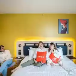 I stayed in the ๐๐ถ๐ฟ๐ฒ๐ณ๐น๐ ๐ฎ ๐ฏ๐ฒ๐ฑ๐ฟ๐ผ๐ผ๐บ, a 2-bedroom room with a nicely sized ๐๐ค๐๐๐๐ก ๐๐ฅ๐๐๐ in the middle and large glass windows with city views. This room can sleep 4 people, but I stayed with 3 ๐งณ