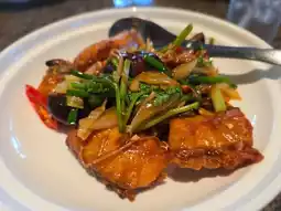Hua Seng Hong Nuanchan Branch is a large Chinese restaurant beautifully decorated with a garden, waterfall, stream, and beautiful fish ponds. Inside, the dining room is decorated in a Chinese style. The menu is diverse, including roast duck, dim sum, hot pot, and seafood, all made with fresh ingredients. The flavors are delicious and moderately seasoned, not too strong. It is a restaurant suitable for bringing your family to enjoy tasty food and have conversations in a relaxed atmosphere. The staff provides good service, and there is convenient parking available.