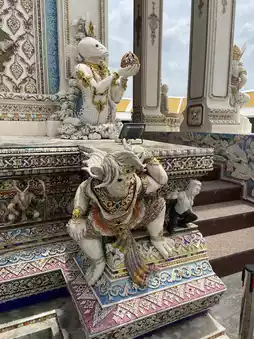 Pariwat Ratchasongkhram Temple, or Pariwat Temple, is located along Rama 3 Road amidst the tall buildings of Bang Phongphang area. It stands out immediately with its unique character as soon as you approach. One of the highlights is the Benjarong plaster sculpture church, which creatively blends traditional Thai art with contemporary styles in a novel way. It features Buddhist deities, giants, angels, and even modern characters like superheroes, cartoon dolls, and important historical figures such as King Arthur, Pharaohs, Vikings, and even the world footballer "David Beckham."