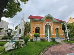 The Minor Vihara Building is part of the royal cemetery within Wat Ratchabophit Sathitmahasimaram Ratchaworawihan. It is a European-style building constructed during the reign of King Rama V, used to enshrine the ashes and relics of royals from the Chakri dynasty and other royal families.