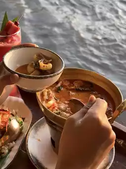 If you're looking for a date spot with an amazing view, this is the place! "Naam 1608" is a riverside restaurant in the Song Wat area. It's not just the great atmosphere, but the Thai food here is also very flavorful—not just catering to tourists, but rich and satisfying for Thai palates. The prices are friendly too. In the evening, there’s live music playing, creating the perfect vibe with beautiful sunset views 🌅🫶🏻