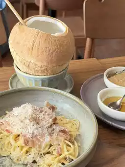 If someone asks which cafe I visit most often in Thonglor, I can answer immediately: "Homeland." It's a super chic cafe with incredibly delicious food because the cafe uses ingredients from farmers and pays great attention from selecting the ingredients to cooking. The recommended menu that you must order when you come is the coconut matcha, which has a very rich flavor. You can tell the fresh coconut water really enhances the matcha 🤩 The desserts are also delicious. I declare it my all-time favorite cafe 🫶🏻
