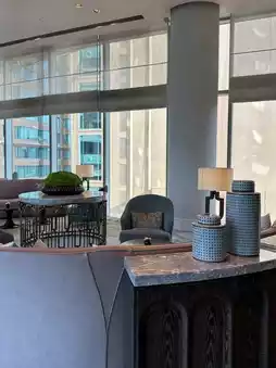 Spacious rooms with floor-to-ceiling windows and skyline views
