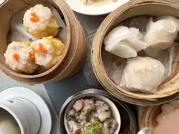 They have shrimp dumplings, har gow, xiao long bao—served hot in baskets without holding back.
