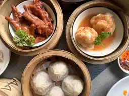 Shrimp dumplings, shrimp wrapped in tofu skin, fish maw soup, lime meatballs, Peking duck, and char siu pork are must-haves