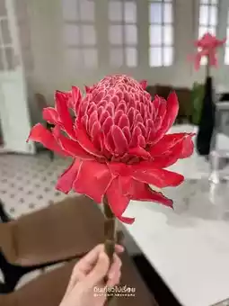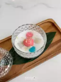 The recommended menu is the Coconut Mousse Cake, which looks like a small coconut but has a brown outer shell made of chocolate. The inside coconut flesh is a coconut chiffon cake. It’s delicious and a great idea. Other menu items include Dahla Delight ice cream in a reddish-pink color and Khanom Ko, a fragrant and creamy coconut milk dessert.