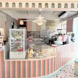 Sunny Flavour Cafe in Bangkok, Thailand, is a charming cafe with pastel colors and palm tree motifs, making you feel as if you've stepped into a picture book world!