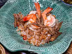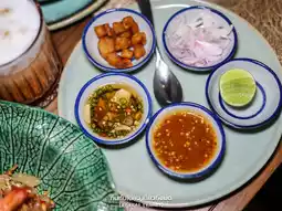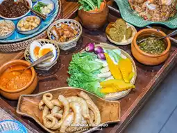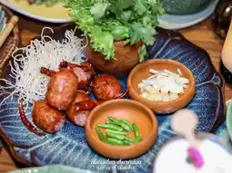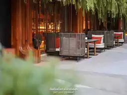 Nava Kitchen, with a buffet breakfast featuring a full line-up like a 5-star hotel. For other meals, this restaurant serves Thai fusion from every region: Northern appetizers, grilled shrimp with tamarind sauce, crab fried rice, pomelo salad, lotus petal wraps, green curry beef, Isaan sausage, etc. The authentic flavors are well done.