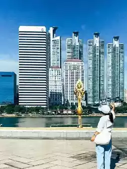 Benjakitti Park is a large public park in the heart of Bangkok. Besides being a popular exercise spot, the park is also perfect for picnics, relaxing, and enjoying the beauty of nature. It features large trees, beautiful gardens, and a natural ecosystem to explore. Most importantly, there are plenty of stunning photo spots! There is a nature-viewing bridge that contrasts with the high-rise buildings. The spot we photographed is the Golden Champa tree area, which has bright golden-yellow leaves and is incredibly beautiful. We were quite excited about this spot because it gives off a vibe similar to Korea or Japan ☘️🍂