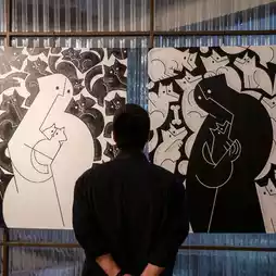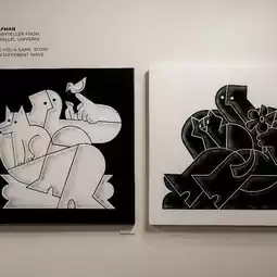 MR.HALFMAN, the storyteller from the parallel universe, conveys emotions, memories, and open-ended questions through minimalist style works with simple lines, accessible geometric shapes, and a black-and-white minimalist tone. This reflects stillness, sharpness, and empty space that invites us to pause and think, while also allowing viewers to imagine and fill in their own feelings in each scene.