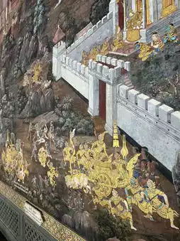 🎨 Ramakien mural paintings – surrounding the temple corridor, these murals beautifully depict the legendary stories with exquisite detail.