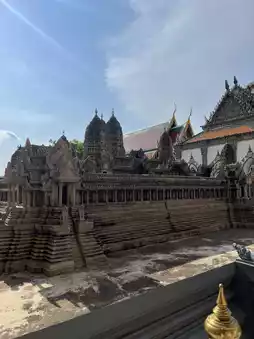 The moment you step into the temple grounds, you feel the grandeur, elegance, and the powerful aura of faith. The stunning architecture is surrounded by pagodas, the ubosot (ordination hall), and the library hall adorned with golden glazed tiles, intricately carved in every corner 🛕✨