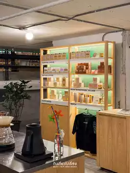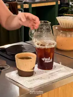 The highlight is the use of coffee beans from Maneepruek Village, Nan Province. The menu we ordered was drip coffee with Ching Farm beans, priced at 380.- Honey Rank, TOE 2024, served with coffee flower tea, which complements the flavor very well.