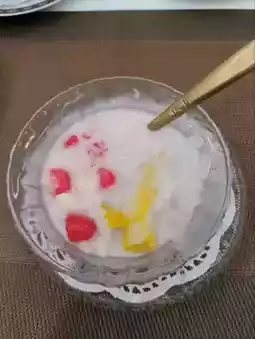 For dessert, we ordered crispy ruby: The ruby pieces were salty, and the coconut milk was bland. Normally, I don’t eat sweets, but I still had to ask the staff for extra syrup to add.