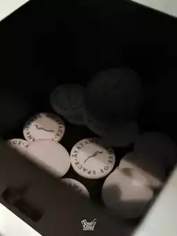 With every purchase, the shop gives you a coin to drop into a donation box. You can choose which box to donate to, based on the six different senses.