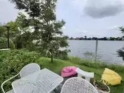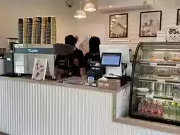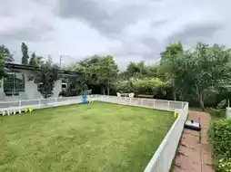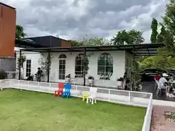 A small café in Sammakorn Village where you can bring your pets. There is a yard for dogs to run and play. They offer a full range of food, drinks, and delicious cakes at affordable prices. There is an air-conditioned area and a riverside zone where you can sit comfortably in the evening. We ordered cocoa and spaghetti, both tasted great. The kids at home liked it. The staff provided good service with smiles. The café is a bit deep inside the alley from the village. There is parking for about 4-5 cars, and you can also park along the street.