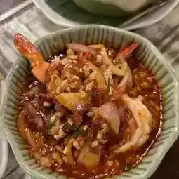 Our favorite dish is the steamed seafood curry in a coconut 🥥, packed with shrimp and squid, fresh and bouncy, no holding back. It’s fragrant with coconut milk and full of herbal flavors.