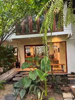 Taking everyone to a brunch café with a great atmosphere, cozy vibes in the Langsuan area. Lots of photo spots, outdoor zone with a shady, lush atmosphere, and it's pet friendly too.