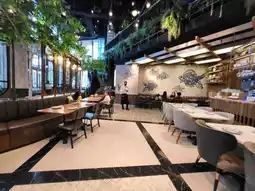 The restaurant’s decor is stylish, with walls adorned with blue-dyed fish patterns and plenty of green plants, creating a fresh and natural atmosphere. The seating area is spacious and comfortable, suitable for both solo visits and gatherings with friends. The overall environment is not only great for photos but also relaxing and pleasant.